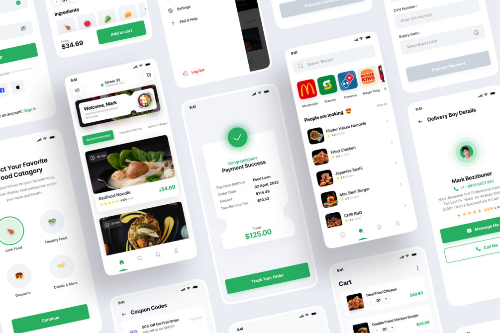 FreshHappy is a Food Delivery App. This UI Kit contains a high-quality mobile application design best suited for any business connected to food delivery and online food ordering app.